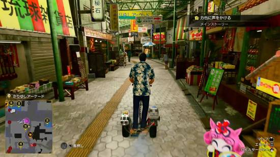 在探索环节,玩家不仅能步行或打车,还能使用《如龙8》中出现的电动代步工具“oka冲浪者”。桐生骑上这台类似平衡车的装置后能高速穿梭街头,极大提高了探索效率。试玩时,4gamer体验了在冲绳商店街驾驶,街区氛围的还原度令人印象深刻。