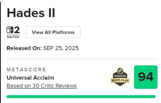 《哈迪斯2》媒体评分解禁,不仅超越了前作,更以m站94分的佳绩成为2025年新作高分冠军,超越了此前稳居榜首的《光与影:33号远征队》。