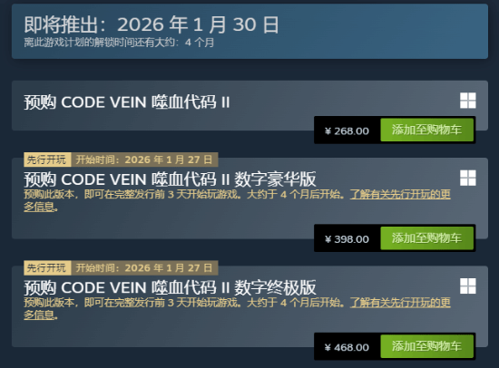 本作今日公布了游戏将于2026年1月30日发售的消息以及各版本的售价。