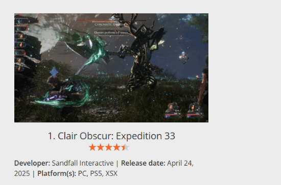 今日外媒gamesradar放出了他们认为截止到现阶段的年度最佳游戏对象,《光与影:33号远征队》排在首位,以下是本文简要翻译并总结为何给出高分的理由: