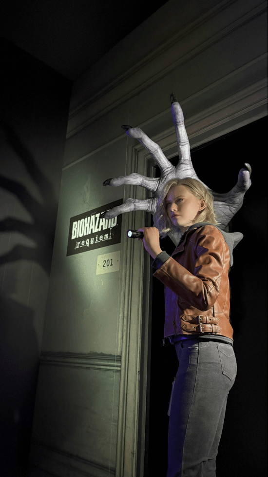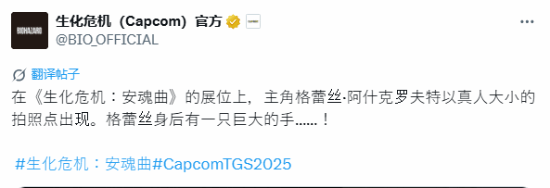 今日生化危机官方推特发表了一张展台图片,并且表示在展台上将会有生化危机9的主角1:1雕像,伴随着身后的硕大的巨手雕像一同登场。