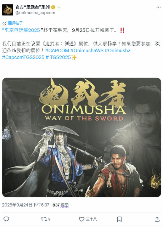 截止到目前,多个游戏ip的官号在推特上表示会参加本次tgs游戏线下展会,包括《鬼武者》《虚实万象》《生化危机9安魂曲》《怪物猎人物语3:命运的双龙》纷纷晒出参展照片。