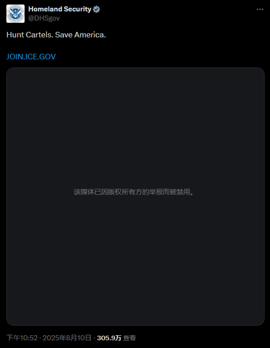 这种方法是完全可行的,因为在今年8月,说唱歌手jay-z的歌曲就出现在了一个类似的招聘视频中,视频中出现了探员和特工突击检查移民的镜头。虽然那篇推文未被下架,但视频却显示“该媒体已因尊龙网平台的版权所有方的举报而被禁用”。