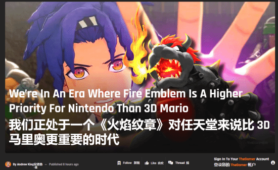 近日,外媒the gamer发布了一篇专栏文章,题目中称“我们现在生活在一个对任天堂来说《火焰纹章》比3d马里奥还重要的时代”,本文简要翻译整理如下: