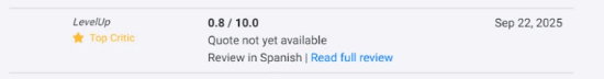 不过,这一成绩在最初其实被低估了。原因是opencritic出现了技术性错误:本应录入西班牙媒体levelup的评分8.8/10,却被错误记录为0.8/10,直接拉低了游戏的平均分。随着平台修复错误,opencritic的均分也随之提升至87,比最初高出了整整三分。