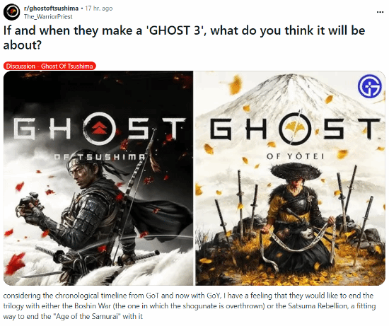 reddit玩家“the_warriorpriest”日前发文,谈到了《羊蹄山之魂》未来可能会推出的续作,说道:“考虑到《对马岛之魂》的时间线,以及如今《羊蹄山之魂》的推出,我预感游戏的第三部可能会以‘戊辰战争’(推翻幕府的那场战争)或‘西南战争’作为终结——这将为武士时代画上一个恰当的句号。”