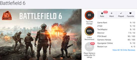 gamerant给9分:《战地6》是爆炸性、让人肾上腺素飙升的fps游戏,是《战地》系列的最佳状态。