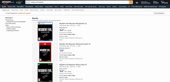 值得一提的是,此前曾有reddit论坛网友分享,《生化危机9:安魂曲》的实体版已经在英国地区开启预购,在亚马逊、hmv和smyths toys等多家平台都有售,ps5和xbox版售价69.99英镑,ns2版售价59.99英镑。