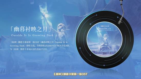 《原神》挪德卡莱第一张ost《幽暮衬映之月》即将上线,专辑将收录由hoyo-mix音乐团队为《原神》挪德卡莱地区创作的原声音乐,包含挪德卡莱音乐现场中演奏的主题曲《挪德卡莱》与战斗曲《永夜与破晓的誓刃》等曲目。旅行者们敬请期待!