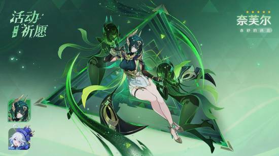 在「月之二」版本第一期角色活动祈愿中,游戏内将同时开放角色活动祈愿「赤砂的诱言」与角色活动祈愿-2「众水的颂诗」。全新限定五星角色「湮沙的秘闻 ·奈芙尔(草)」将出现在角色活动祈愿「赤砂的诱言」中,限定五星角色「不休独舞 · 芙宁娜(水)」则在角色活动祈愿-2「众水的颂诗」中迎来返场。
