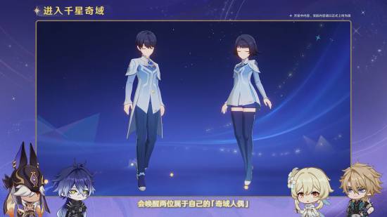 「千星奇域」是一个由旅行者主导的,集游玩、社交、构筑于一体的梦幻乐园。在进入「千星奇域」后,各位旅行者会唤醒两位属于自己的「奇域人偶」。奇偶是旅行者在「千星奇域」意志的化身,可以随时、任意调整他们的外观形象!奇偶的形象不仅能在「千星奇域」里欣赏,当他们在提瓦特大陆冒险时,搭配好的装扮也能「投影」到他们身上哦。在完成魔神任务序章「捕风的异乡人」相关任务后,就能解锁这片奇幻天地。