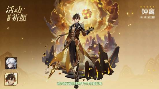 在版本第二期角色活动祈愿中,角色活动祈愿「炉边烬影」将会开启,限定五星角色「孤暝厄月 · 阿蕾奇诺(火)」将迎来概率up,而限定五星角色「尘世闲游 ·钟离(岩)」则在角色活动祈愿-2「陵薮市朝」中迎来返场。