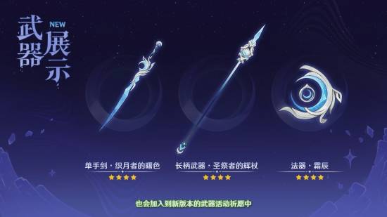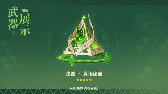 除了新角色之外,全新限定五星法器「真语秘匣」和三把挪德卡莱四星武器也会加入到新版本的武器活动祈愿中。