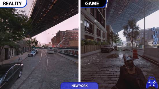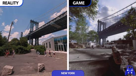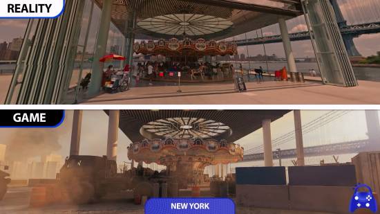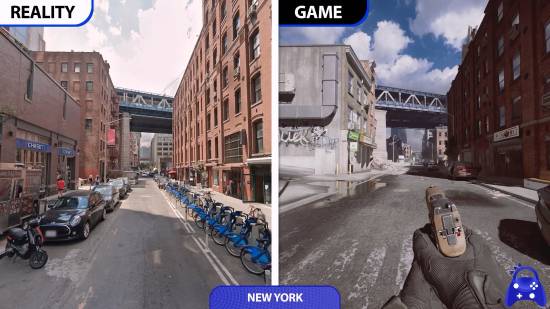 尽管为优化性能取消了光线追踪效果,《战地6》凭借最新寒霜引擎依然呈现惊艳视觉效果。youtube频道elanalistadebits最新发布的实景对比视频,将游戏中的直布罗陀与纽约地图与现实场景逐帧比对。虽然开发团队未追求1:1复刻,但对地域氛围的精准还原令人赞叹。