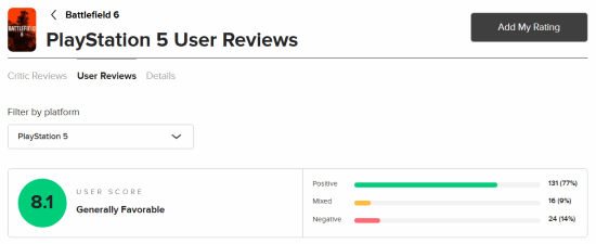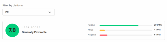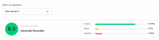 目前游戏的m站玩家评分已经解禁,截至发稿前,ps5版8.1分;xsx版8.3分;pc版7.8分。