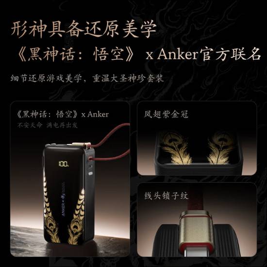 安克联动《黑神话:悟空》的多款联名产品已正式开售!其中anker任逍遥充电宝补货将于10月20日中午10点开抢,活动价299元!官方链接>>>
