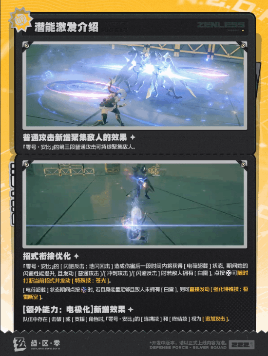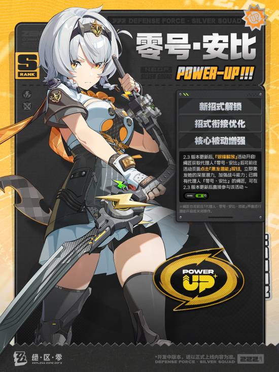 今日,官方公布了第二名被加强的角色——零号·安比的加强方案。根据预告来看,加强后的大安比改善了挂标记慢、对群输出弱、追加攻击分散的缺点,并优化了招式衔接和操作手感。和之前一样,玩家可自由选择是否开启“深度潜能激发”的加强方案。如果更喜欢玩以前很弱的大安比,不激发潜能即可。