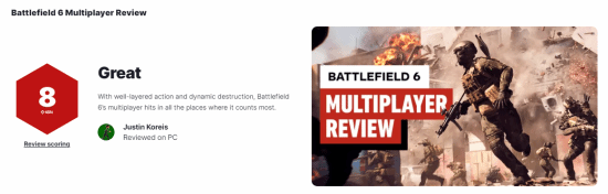 今日,ign发布了pc版《战地6》多人模式的最终测评,媒体评分8分。