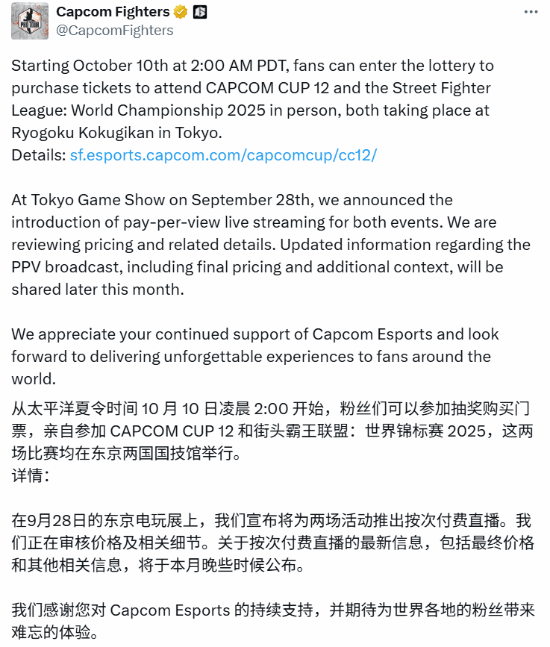 卡普空近日因对《街霸6》两项核心赛事capcom cup 12与street fighter league世界锦标赛2025实施付费直播计划引发玩家社区强烈反对,随后官方紧急出面回应。