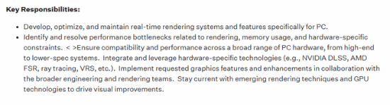 根据招聘页面显示,sds正在招募 “高级pc图形程序员”,岗位描述明确写道:“参与aaa级pc游戏的图形开发,提升视觉体验与技术品质”,并特别强调应聘者需具备整合nvidia dlss、amd fsr、ray tracing(光线追踪) 等尖端图形技术的能力。这一信息表明,该工作室首次转向深度pc技术开发,并非简单移植项目。
