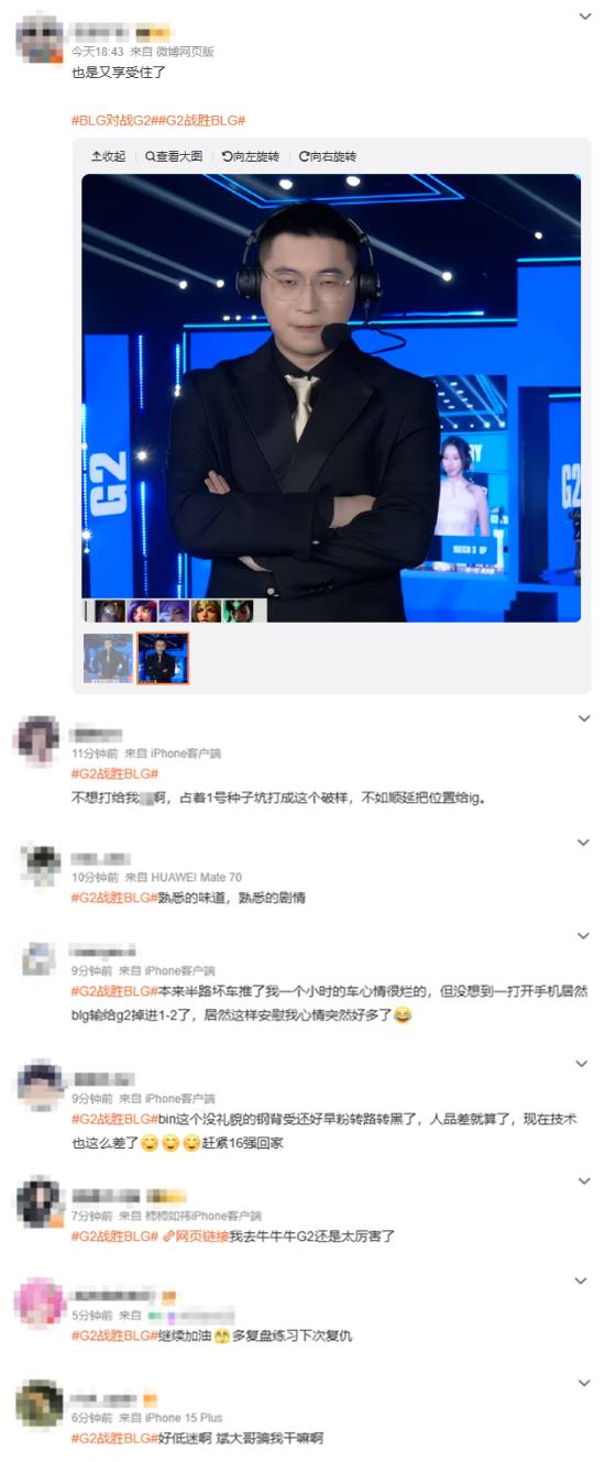 对于blg失败一事,很多玩家表示愤怒,一些玩家还对上单选手bin进行了声讨,也有玩家对blg进行了安慰,希望下次能够进行复仇。屏幕前的你如何看待这样的结果?一起在评论区友善聊聊吧!