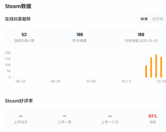 本作上线后获得了不错的媒体评分,m站媒体均分为78分,ign更是给出了9分的高分。不过,似乎并没有什么玩家对本作感兴趣,截止至发稿时,本作在steam平台的在线人数峰值甚至没能突破200人,最高仅来到188人。